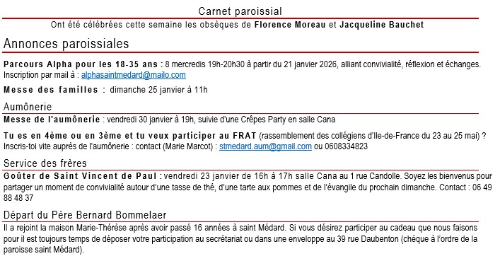 Cher Bernard, merci pour cette vie offerte au service de toutes les communautés qui t’ont accueilli et des groupes que tu as accompagnés. Nous te souhaitons de beaux moments d’amitiés sacerdotales dans ta nouvelle demeure et si ton nom ne figure pas sur le marbre des curés de saint Médard, il reste gravé dans nos cœurs.